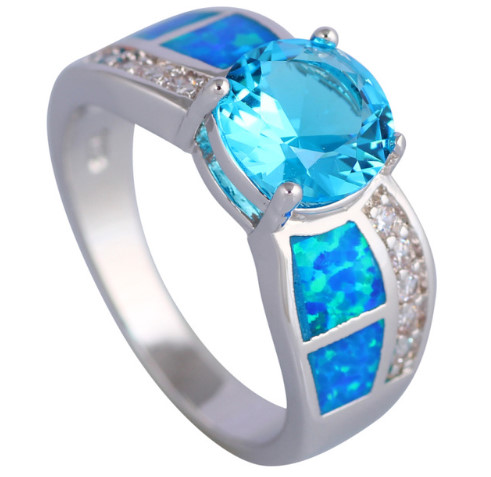 White Topaz blue Fire Opal 925 Sterling Silver Rings